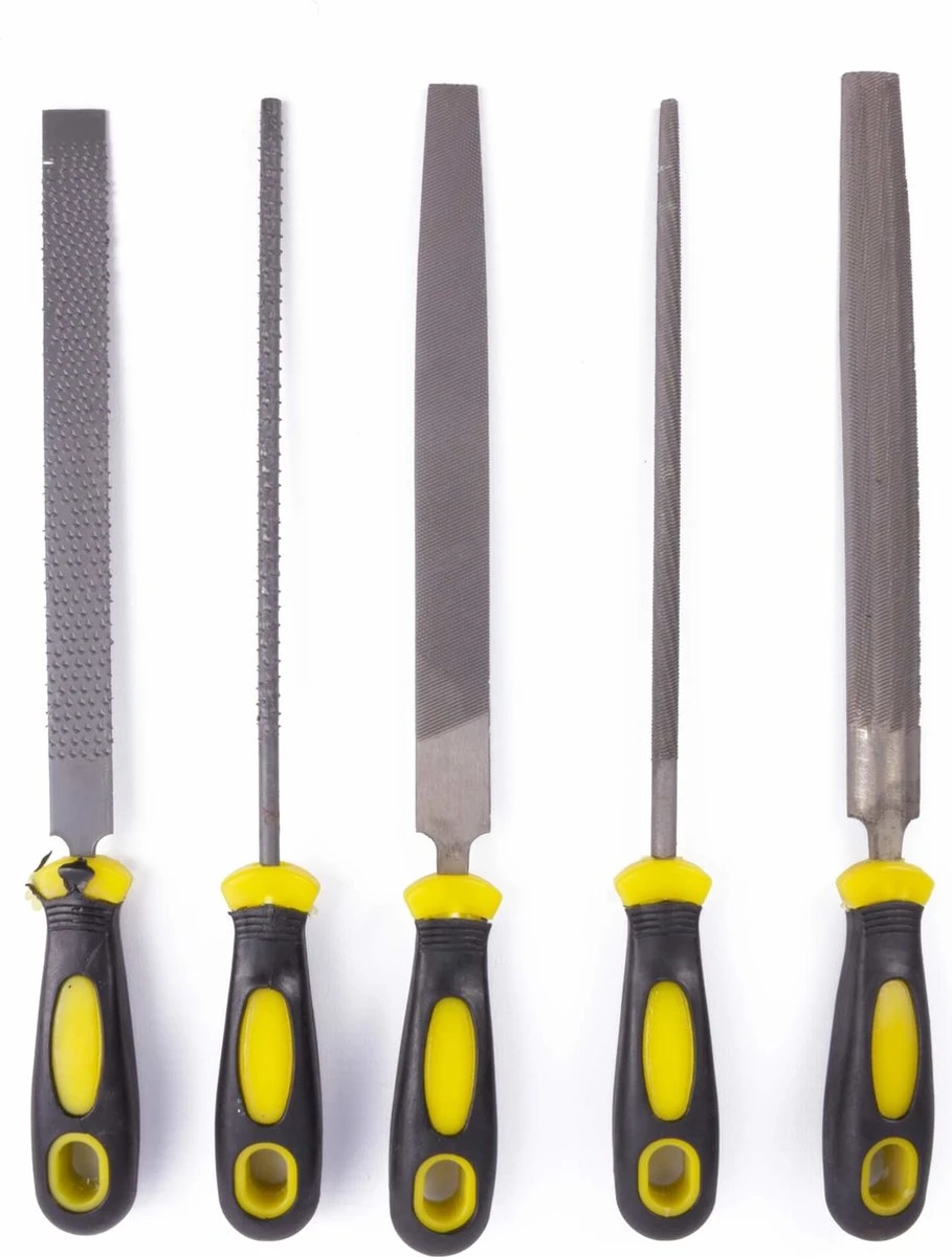 Deze vijfdelige set bevat ijzervijlen en houtraspen. IJzervijlen zijn geschikt om een voorwerp glad te maken of de vorm de geven die u wil. Ditzelfde geld voor de houtraspen. Door de rubberen handvatten heeft u veel grip tijdens het werken.