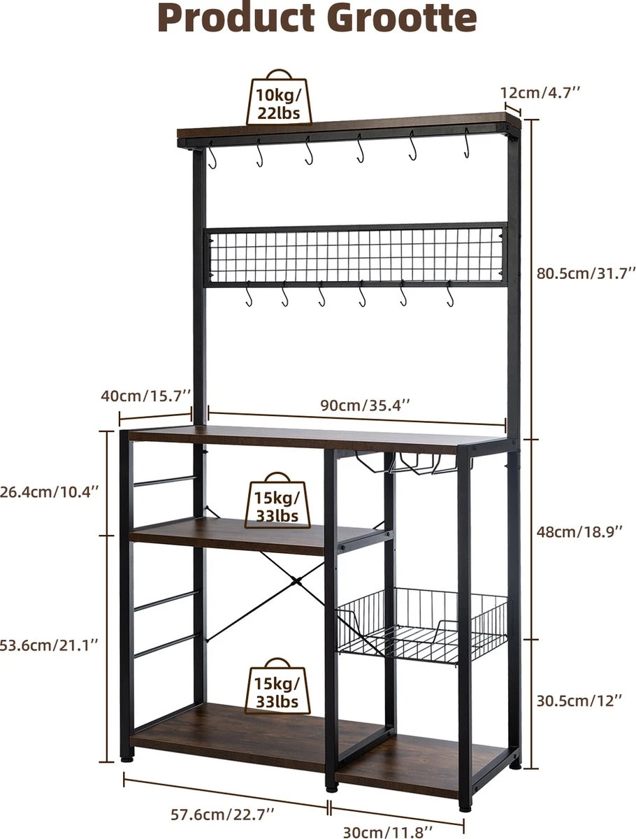 Heeft u niet genoeg ruimte om uw huis georganiseerd te houden? Ons keukenrek biedt de perfecte oplossing met voldoende opbergruimte en een retro uitstraling. Het rek is gemaakt van hoogwaardige materialen en biedt betrouwbare kwaliteit.