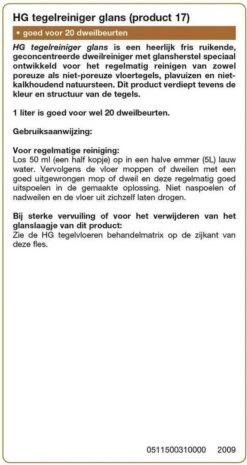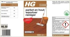 HG Parket & Hout Wasvloer Reiniger – 1L – Goed Voor 20 Dweilbeurten – Veilig Voor De Waslaag