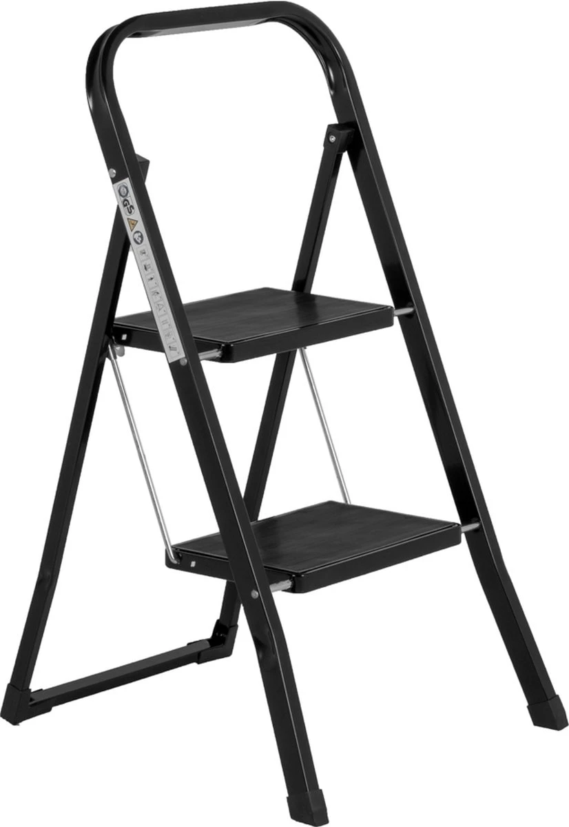 Keukentrap inklapbaar 2 treden zwart is een stevige huishoudtrap voor allerlei toepassingen in en om het huis. De bovenste trede heeft een hoogte van ca. 47 cm. De trap weegt slechts 3.8 kg en is inklapbaar, dus gemakkelijk op te bergen. De keukentrap is voorzien van anti-slip poten en antislipbekleding op de treden voor extra veiligheid. Het maximaal draagvermogen van de keukentrap inklapbaar 2 treden is 150 kg.