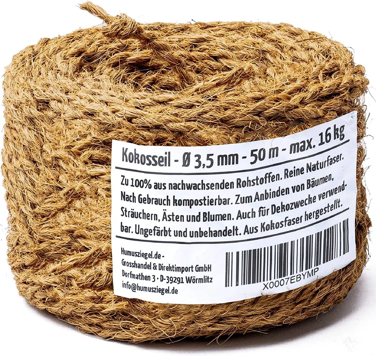 Humusziegel Jute Rope Roll – Coconut Fibre Natural Jute Twine String – Strong Brown String For Crafts, Garden 3.5mm – 50m 3.5 Mm / 50 M Roll
