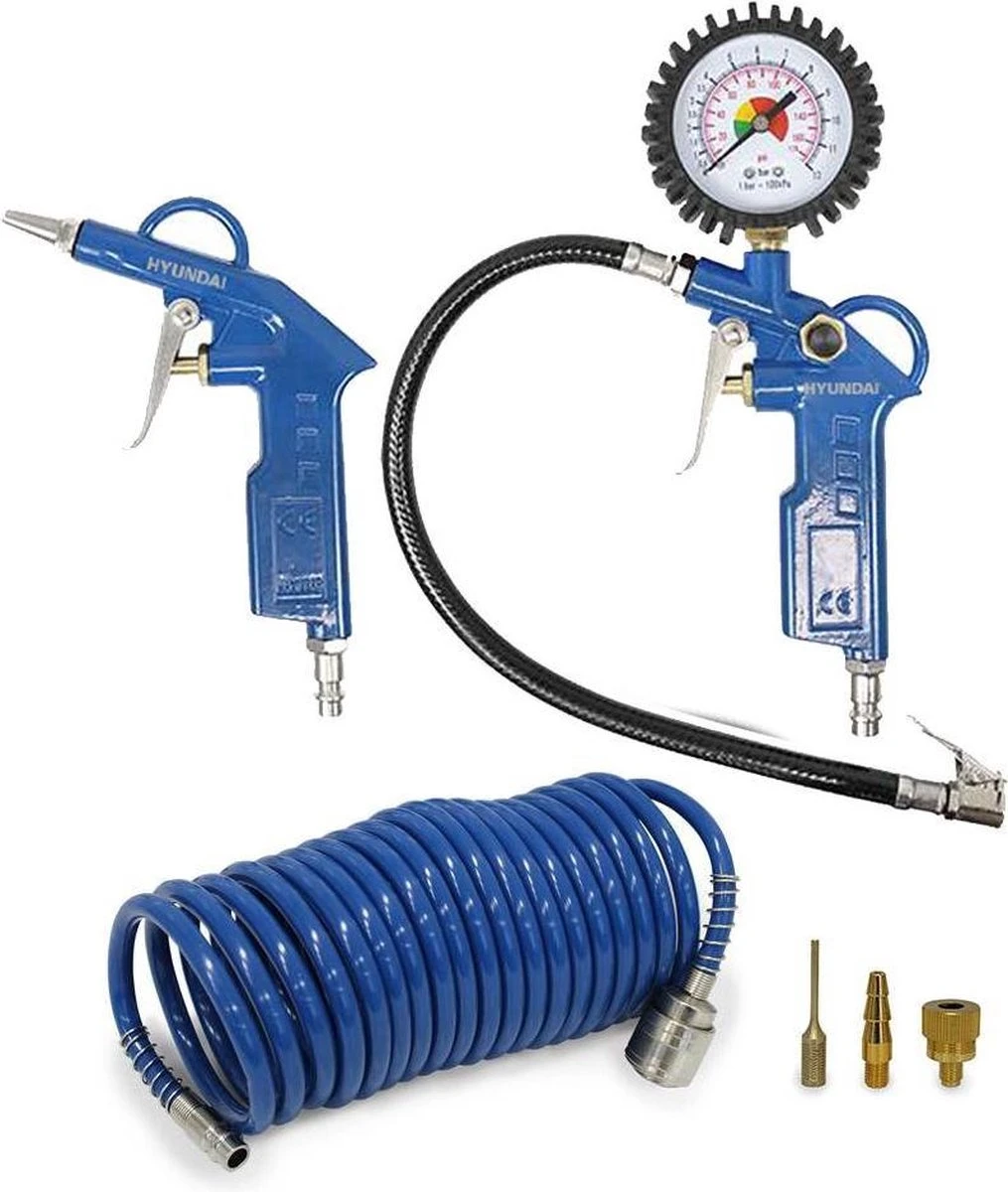 • Deze Hyundai compressor accessoireset bestaat uit de meest gebruikte luchtgereedschappen en is daarmee de ideale aanvulling op een compressor. Zo bestaat deze set uit een bandenvulpistool, blaaspistool en een spiraalslang, aangevuld met 3 ventielen.