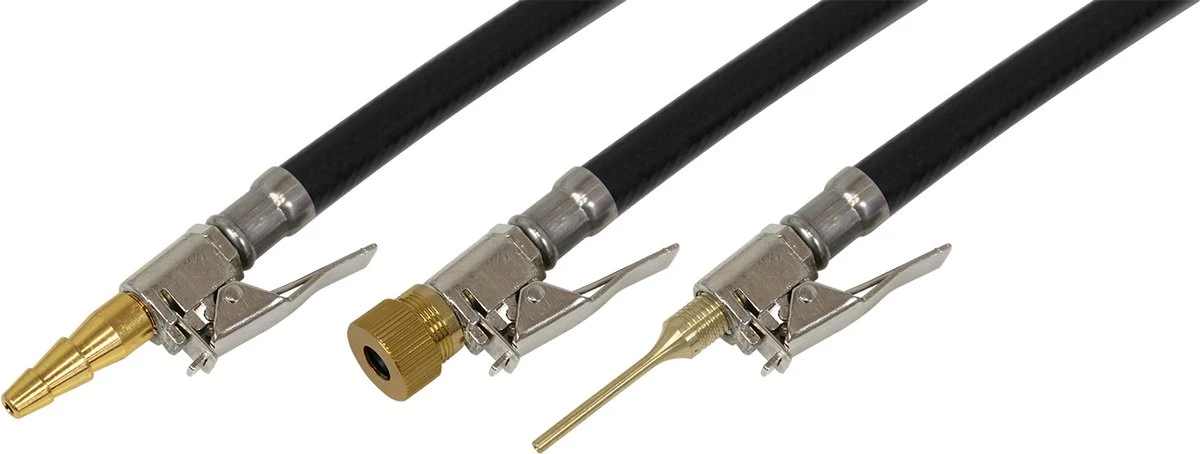 • Het blaaspistool blaast werkelijk alles weer schoon. Zelfs vuil, stof, zaagsel, water, enz. dat zich verstopt op moeilijk bereikbare plekken. De spuitmond heeft een diameter van 2.5 mm en heeft een druk van 5 bar. De bandenvulpistool is voorzien van een dubbele schaal (bar/psi) manometer met rubberen beschermer, 35.5cm slang en een deflatie knop. De 3 ventielen zijn volledig van een koperlegering, waardoor deze zeer duurzaam zijn en heel lang meegaan.