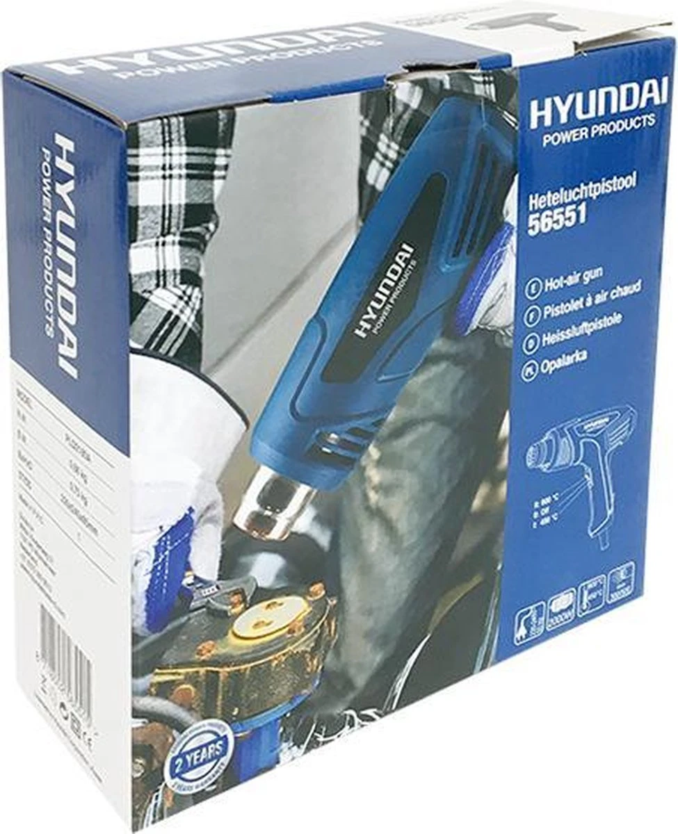 – Verhitten, verbranden en afbranden met een krachtige 2000W Hyundai motor.