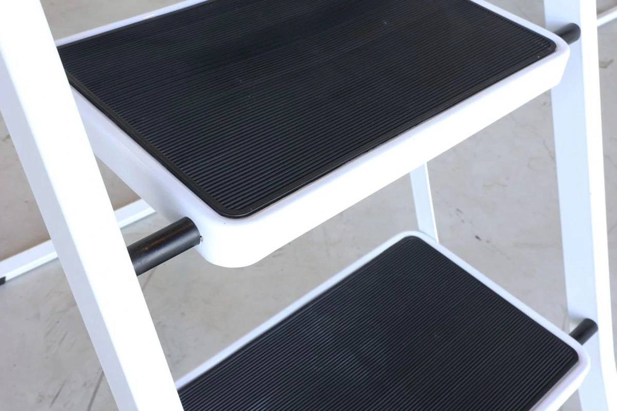 De antislip bekleding op de traptreden en de antislip pootjes voorkomen uitglijden. Tevens beschadigd de vloer hierdoor niet. De maximale belasting van de trap is 150 kg.