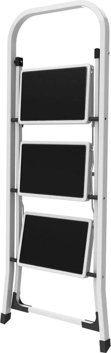 Deze compacte trap heeft 3 ruime treden van elk 30 x 20 cm. De treden bevinden zich op 23,5, 47 en 70,5 cm hoogte. De trap heeft een totale hoogte van 105,5 cm inclusief handgreep. Omdat het trapje eenvoudig in te klappen is, is het makkelijk te verplaatsen en neemt het weinig ruimte in beslag wanneer het niet gebruikt wordt.