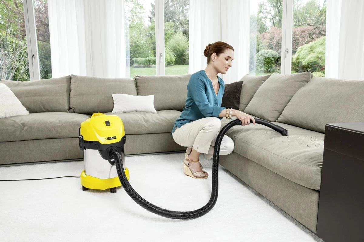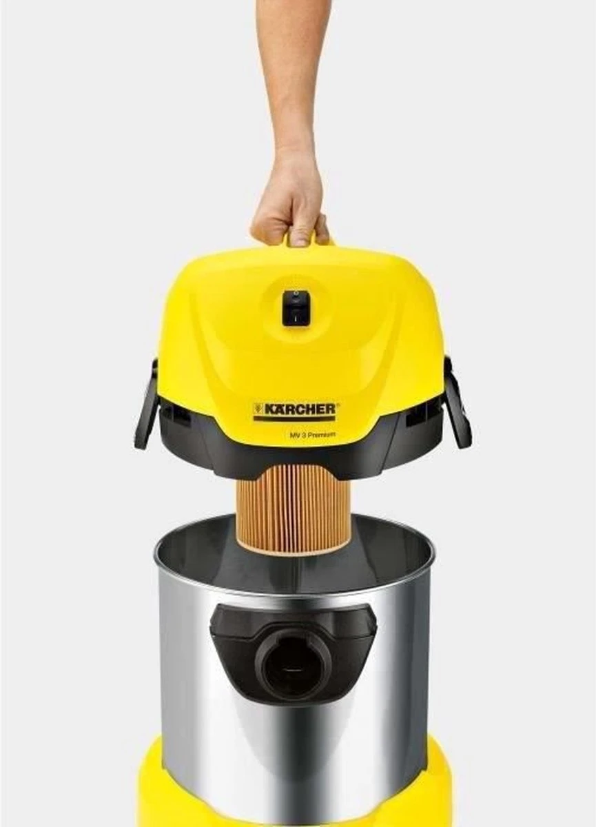 De multifunctionele alleszuiger WD 3 Premium is super krachtig met een stroomverbruik van slechts 1000 watt. Het is uitgerust met een schokbestendige 17-liter roestvrijstalen container en een filterpatroon voor het stofzuigen van droog en nat vuil, zonder dat de filter vervangen hoeft te worden. En als het gaat om vuil, zal de multifunctionele alleszuiger altijd alle soorten vuil onberispelijk verwijderen, dankzij de nieuw ontwikkelde zuigslang en de innovatieve clips vloerzuigmond. Per acculading tot 15 minuten zuigtijd.