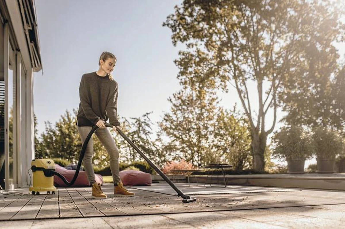 De WD 3 V-17/4/20 is krachtig en energiezuinig met een stroomverbruik van slechts 1000 W. Zowel het apparaat als de zuigslang en het Clips-vloermondstuk zijn perfect op elkaar afgestemd – voor de beste reinigingsresultaten op droog, nat , fijn of grof vuil. De nat- en droogzuiger overtuigt door zijn compacte ontwerp en een robuuste kunststof container van 17 l, 4 m stroomkabel, 2 m zuigslang en zijn vliesfilterzak. Dankzij het patroonfilter uit één stuk is het mogelijk om zowel nat als droog vuil op te zuigen zonder filtervervanging. De blaasfunctie is handig voor het reinigen van moeilijk bereikbare plaatsen. De slang wordt opgeborgen door deze aan de kop van de de stofzuiger te hangen, waardoor ruimte wordt bespaard. De kabel kan worden opgeborgen aan de kabelhaak, buizen en vloermondstukken aan de bumper. Het “Pull & Push”-vergrendelingssysteem maakt het eenvoudig openen en sluiten van de container mogelijk. De handgreep van de stof- & waterzuiger kan worden verwijderd en het accessoire kan direct op de zuigslang worden aangesloten. Ook slim: gereedschap of kleine onderdelen kunnen op het opbervak op de machinekop neergezet worden. De ergonomisch gevormde draaggreep maakt comfortabel transport mogelijk.