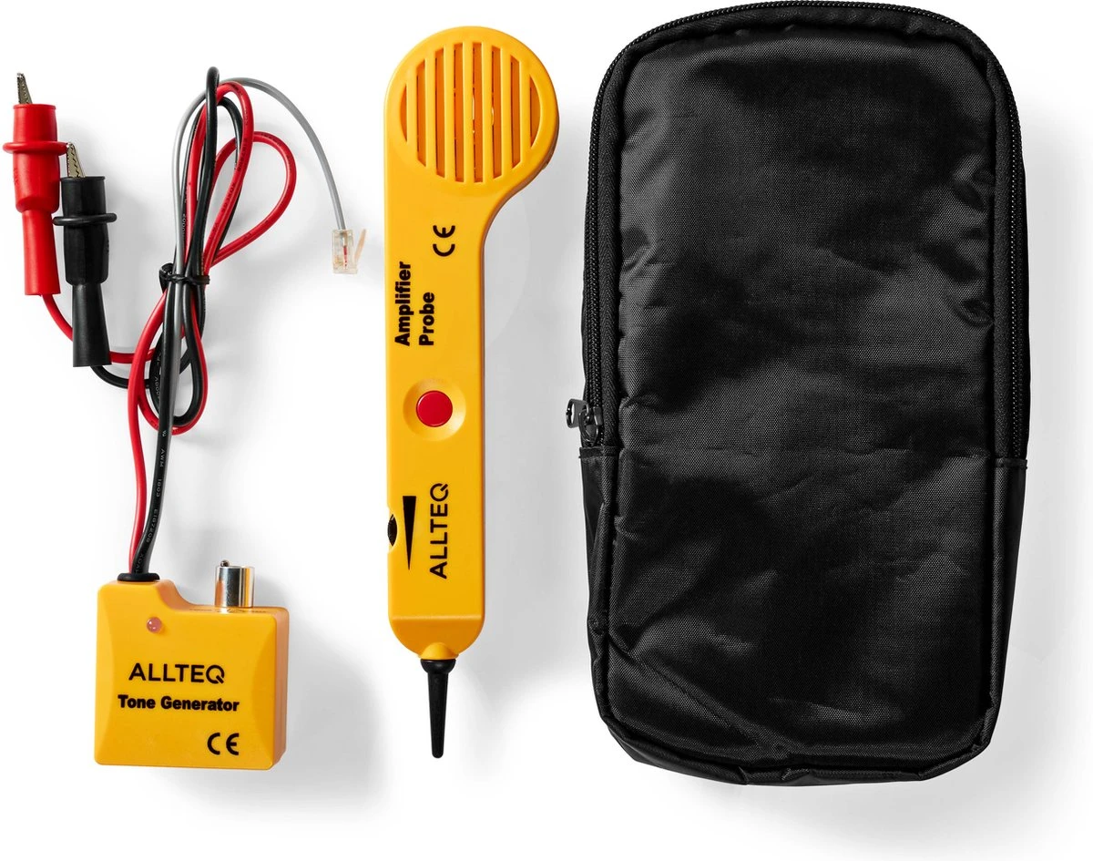 Een toonkeuzeschakelaar, die zich binnenin de testset bevindt, is voorzien voor het kiezen van een enkele vaste toon of een dubbele wisselende toon. Een 3-positie tuimelschakelaar regelt de bedrijfsmodi plus een 3-kleurige led voor de lijnpolariteit, de continuïteit en het testen van de spanning. De Allteq kabeltester wordt geleverd met rode en zwarte testkabels en een handige draagtas, waardoor de tester veilig opgeborgen en getransporteerd kan worden. Het product is bovendien voorzien van een garantie van 5 jaar.