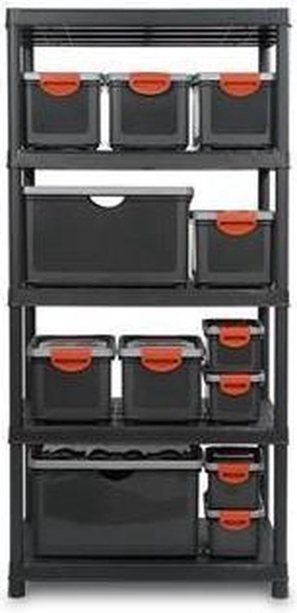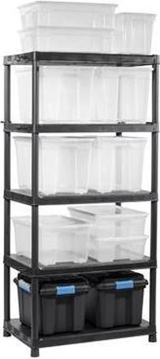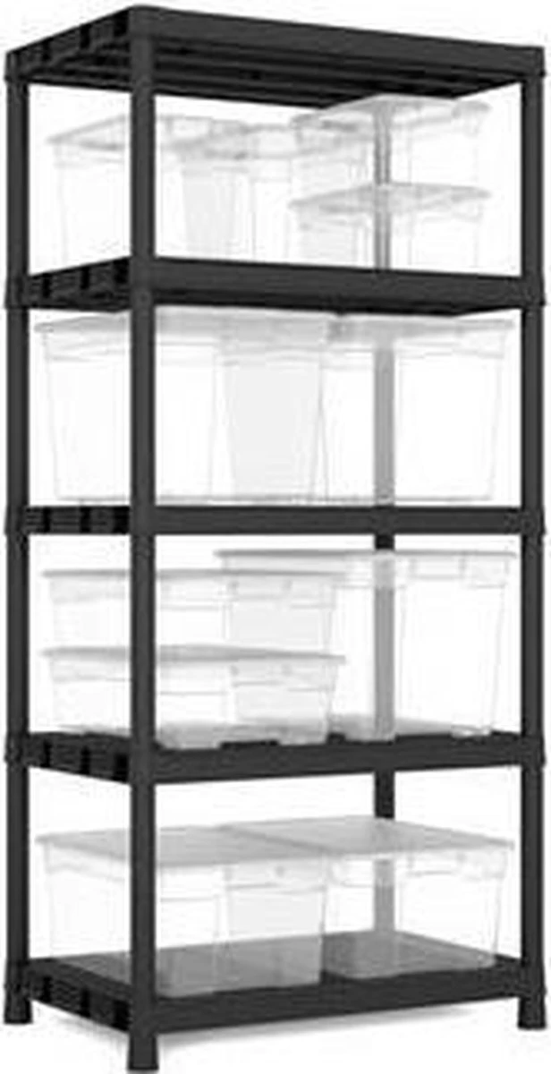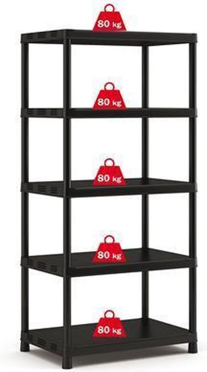 Dit kunststof opbergrek van Keter heeft 5 legborden die elk 80 kg kunnen dragen. Het rek heeft een diepte van 60 cm en is daardoor bijna dubbel zo diep als de meeste andere opbergrekken.