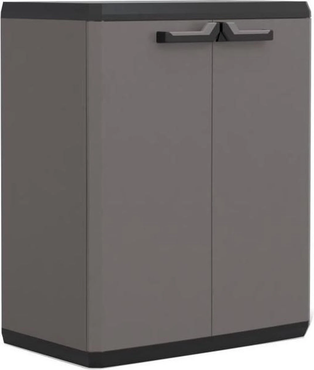 De Più opbergkast is een opbergoplossing die ontwerp, innovatie en functionaliteit combineert. De stellingkast is ontworpen met ergonomische soft-touch handgrepen en de mogelijkheid om de deuren af te sluiten (hangslot niet inbegrepen). Deze kunststof opbergkast is perfect voor bijvoorbeeld in een schuur, garage of berging. De lage opbergkast bevat 1 plank die 15 kg kan dragen. De plank is in hoogte verstelbaar, dus je kunt zelf je ideale indeling maken.