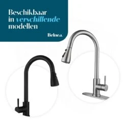 Belnea Keukenkraan Met Uittrekbare Uitloop – Zwart- Incl. Aansluit Slangen – RVS – Mengkraan – Zwart