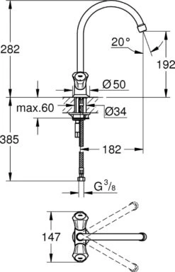 GROHE Costa-L Keukenkraan – Wandmontage – C-bovenuitloop – Zonder Koppelingen – Chroom – 31186001