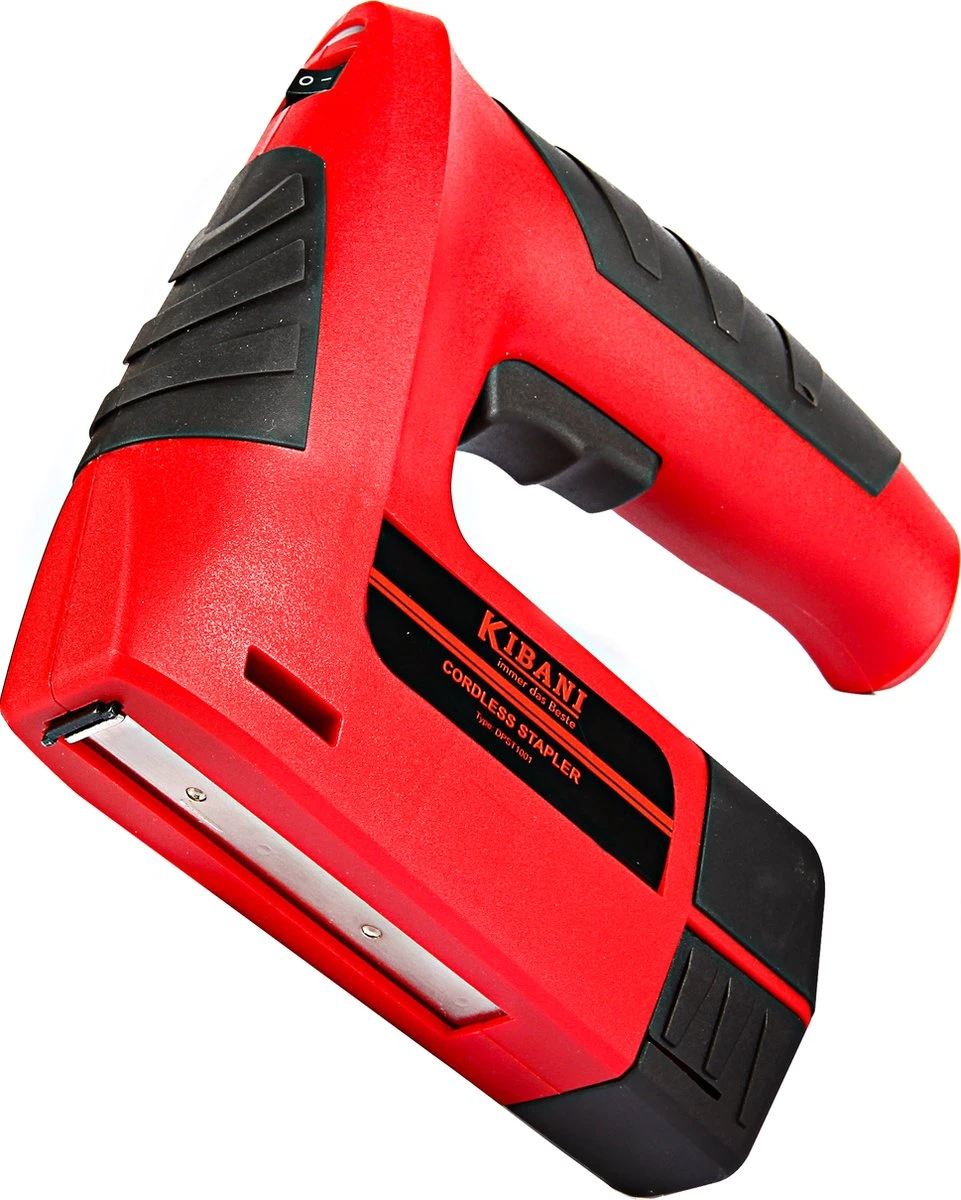 De Kibani accu tacker schiet met een hoge schietsnelheid tot 30 nieten per minuut. De tacker heeft de mogelijkheid om zowel nietjes als nagels te gebruiken. Het apparaat geeft aan wanneer het magazijn moet worden bijgevuld door middel van een rood of groen lampje.