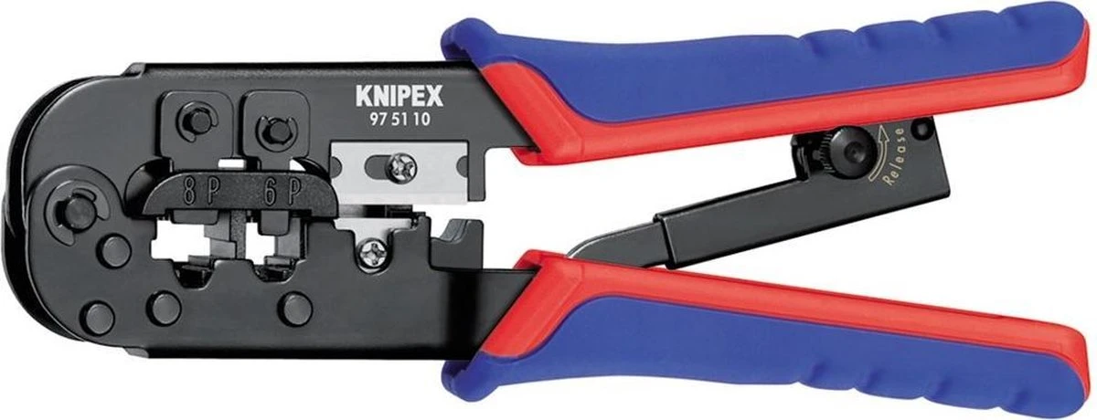 - Voor het krimpen van 6- en 8-polige western-stekkers van het type RJ 11/12 (9,65 mm breed) en type RJ 45 (11,68 mm breed)