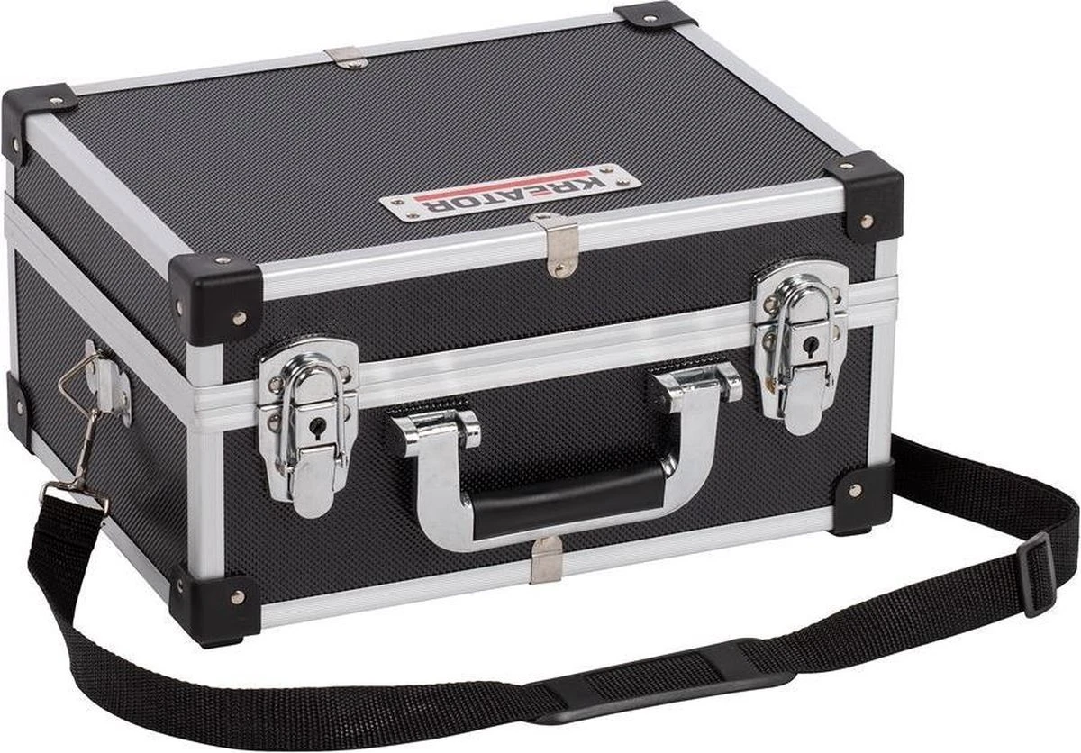 Berg al je kleine en grotere gereedschappen netjes op in deze opbergkoffer met aluminium frame van Kreator. De stevige, maar tegelijk lichte koffer met binnenbekleding meet 320 x 230 x 160mm.