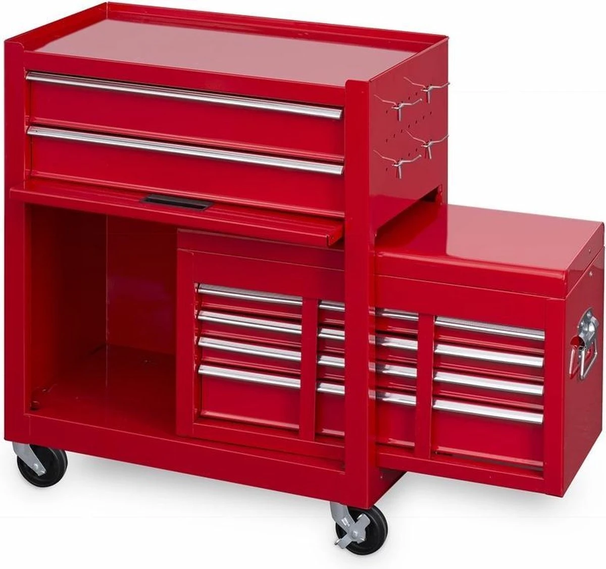 In deze ruime gereedschapswagen kan je al je handgereedschap veilig en netjes opbergen. Het mobiel atelier is voorzien van een boven- en een onderkast en kan naar eigen wens worden ingericht. Nog nooit is orde houden in je gereedschap zo eenvoudig geweest. Je kunt de bovenkast in de mobiele onderkast zetten om plaats te besparen of om je gereedschap snel te vervoeren. De gereedschapswagen bestaat uit stevig metaal.
