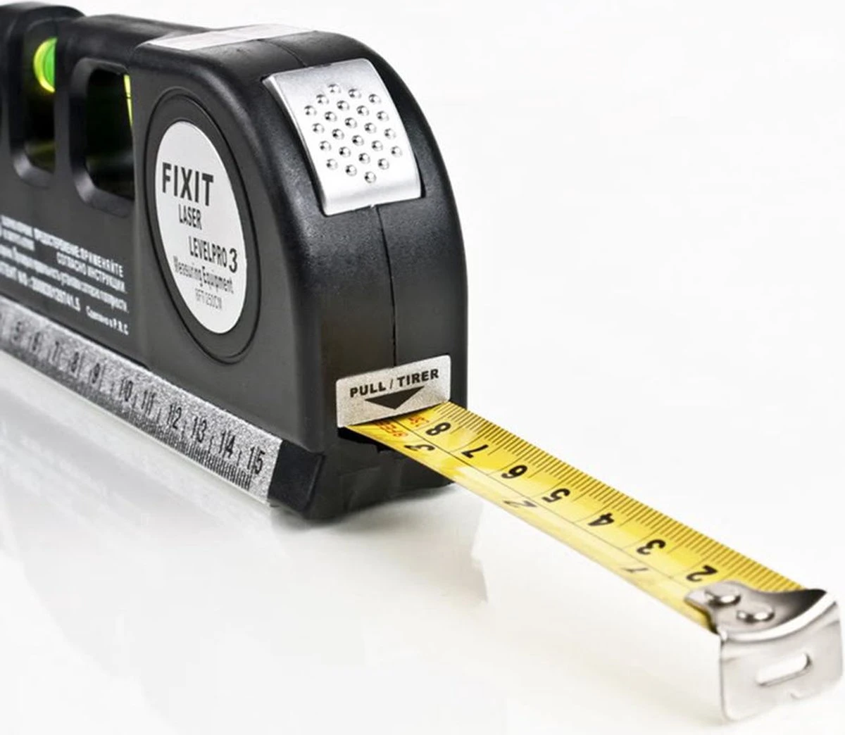 De Laser LevelPro3 heeft een aantal handige specificaties, zoals een ingebouwd meetlint met een lengte van 2,5 meter, een gewicht van slechts 300 gram en een compacte verpakkingsgrootte van 21x8x4cm. Daarnaast heeft het een standaard en metrische liniaal, een laser aan/uit knop en de mogelijkheid om horizontale of verticale laserlichtstralen te projecteren.