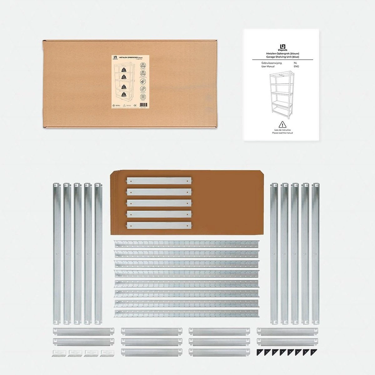 De stellage is gemaakt van stevig verzinkt metaal. Zelfs in een vochtige garage gaat het metaal niet roesten. De houten planken beschermen je spullen tegen krassen en beschadigingen. De stellingkast gaat daardoor lang mee!