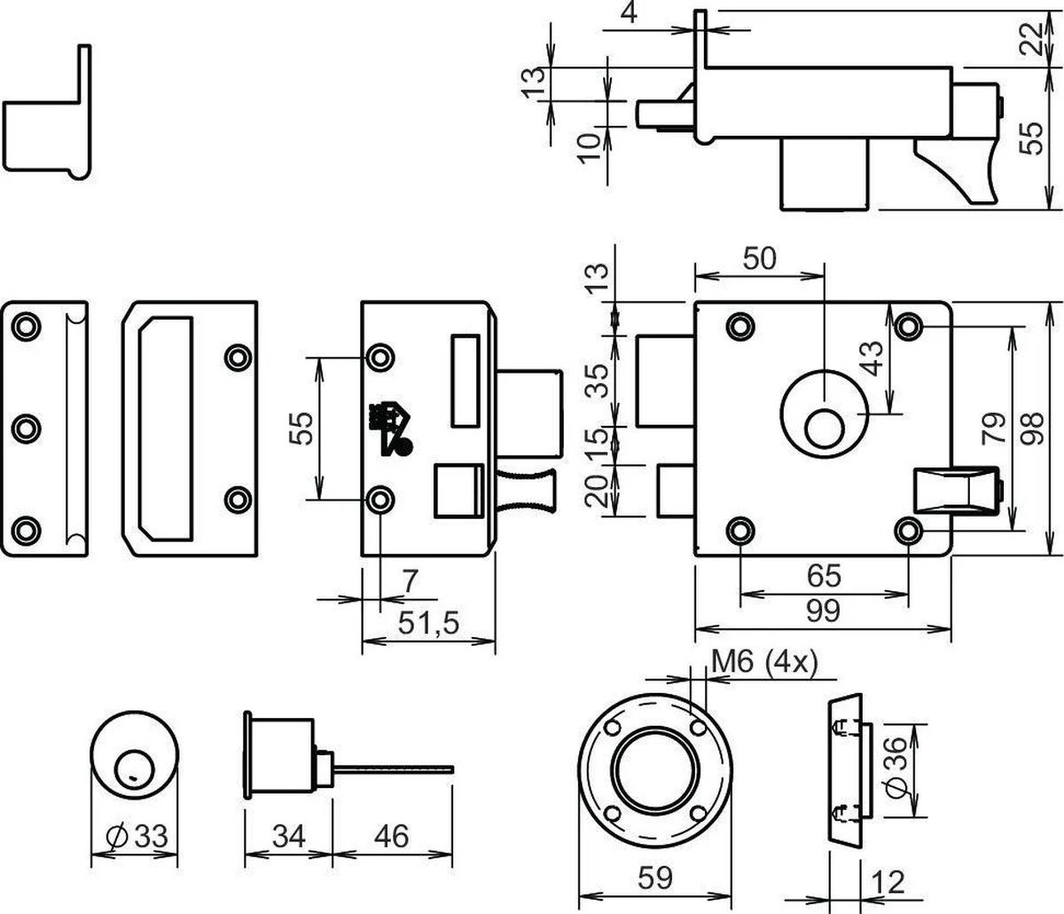 - Messing dagschoot, één toers 20 mm nachtschoot. Afmeting kast: 99 x 98 mm. Max. deurdikte: 37-40 mm. Het VS model is geschikt voor deurdikte tot 70mm