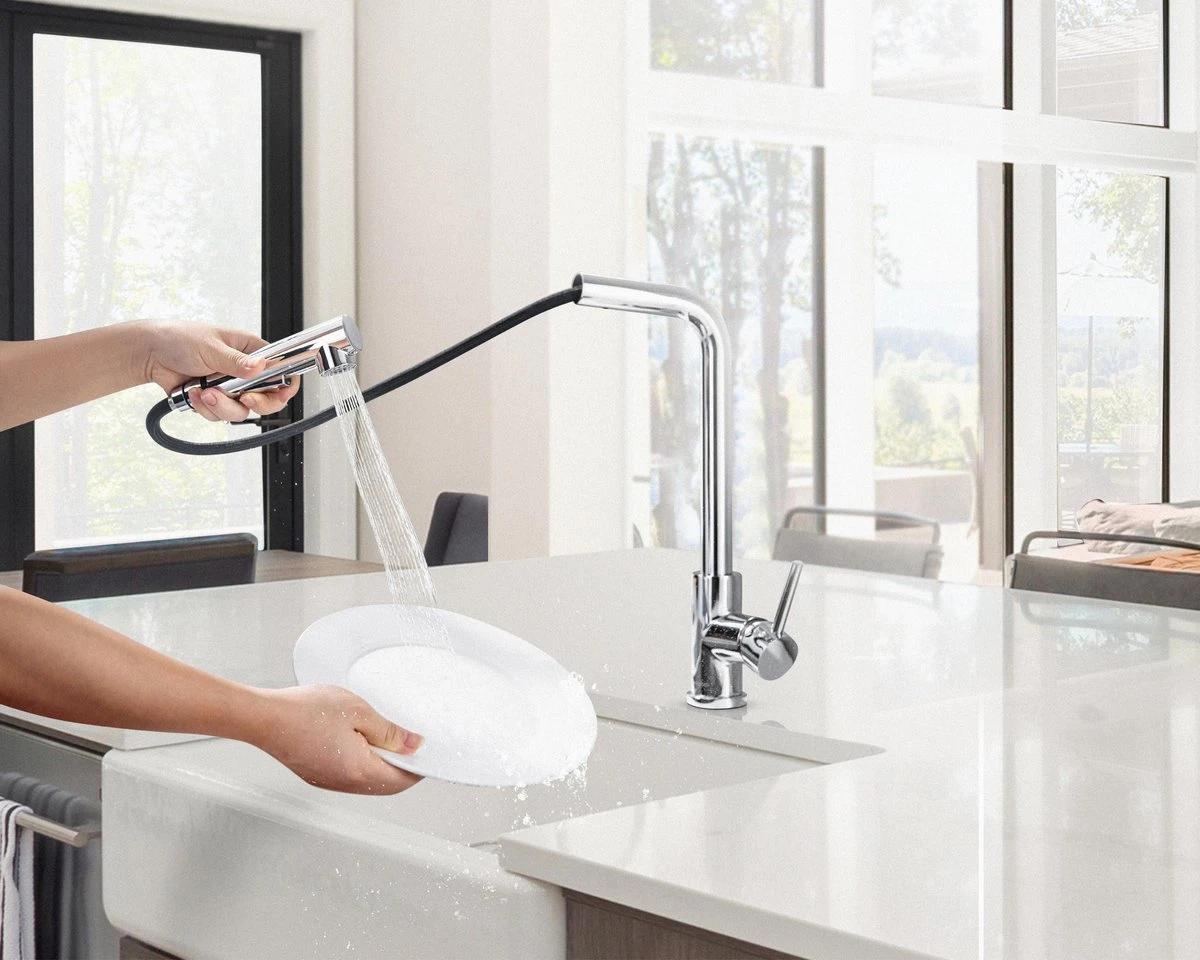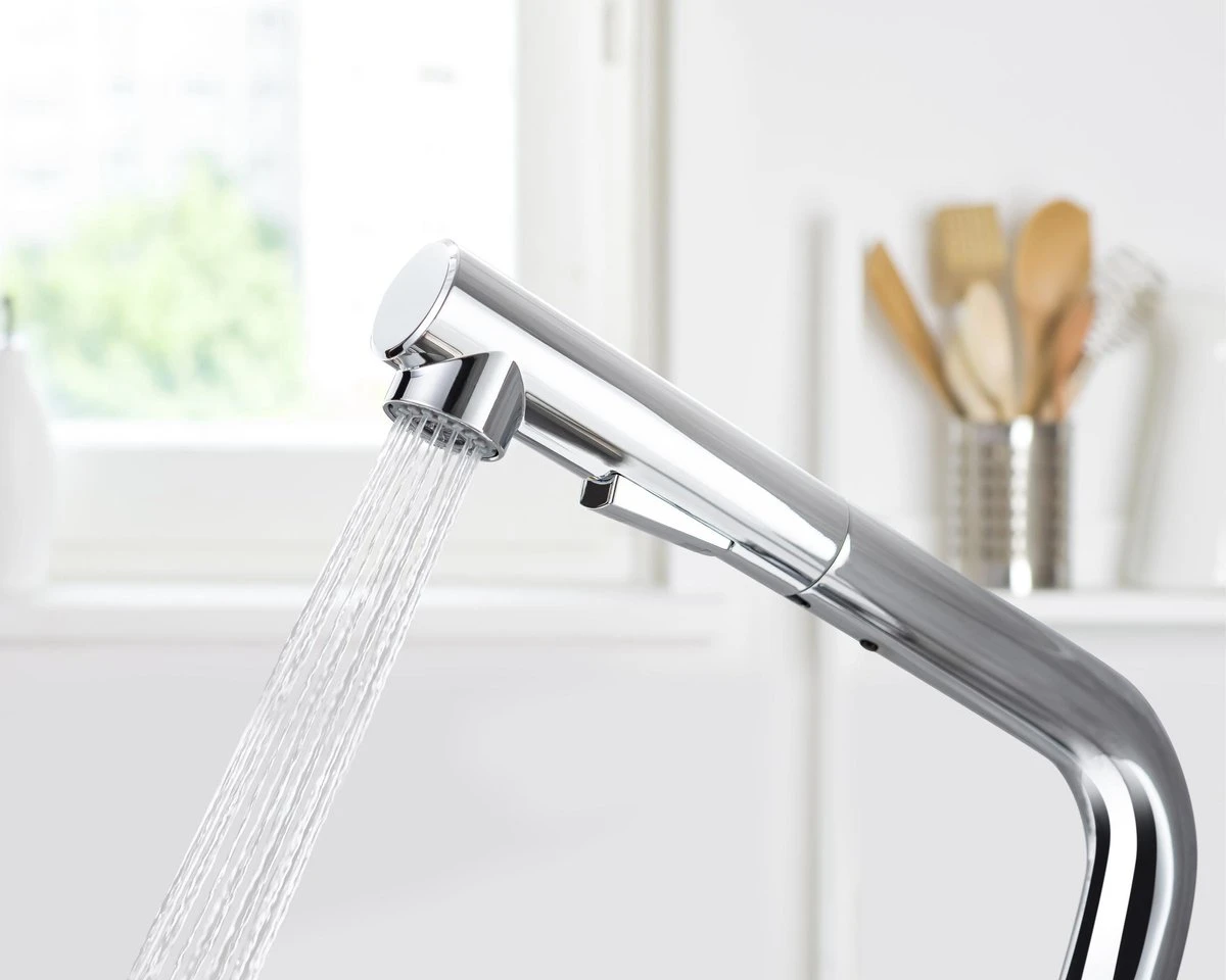 Een keukenkraan met uittrekbare sproeier is dé keukentrend van dit moment. Met het fraaie design plaats je een echte eye-catcher in jouw keuken! Met de ingebouwde handdouche spoel je vanaf nu sneller en makkelijker jouw vaat af. De handdouche is voorzien van een knop met 2-in-1 functie. Kies eenvoudig voor de sproeifunctie of de gewone waterstraal met één druk op de knop.