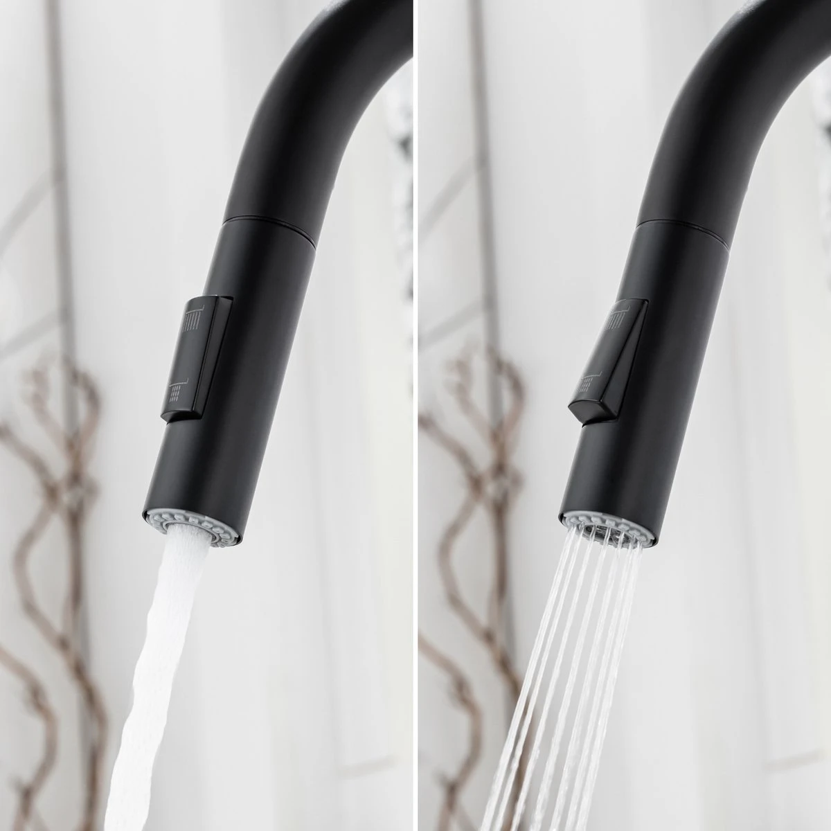 Met de LOMAZOO zwarte keukenkraan Turais haal je de professionele keuken bij jou in huis. De keukenkranen binnen de ProTaps series zijn robuuste kranen met efficiënte bediening én garanderen optimaal gebruikscomfort. Met de krachtige sprayfunctie verdwijnen de meest hardnekkige vaatresten met slechts één druk op de knop. Het grote bereik van de uittrekbare uitloop maakt het uiterst gemakkelijk om de spoelbak na gebruik schoon te spoelen.