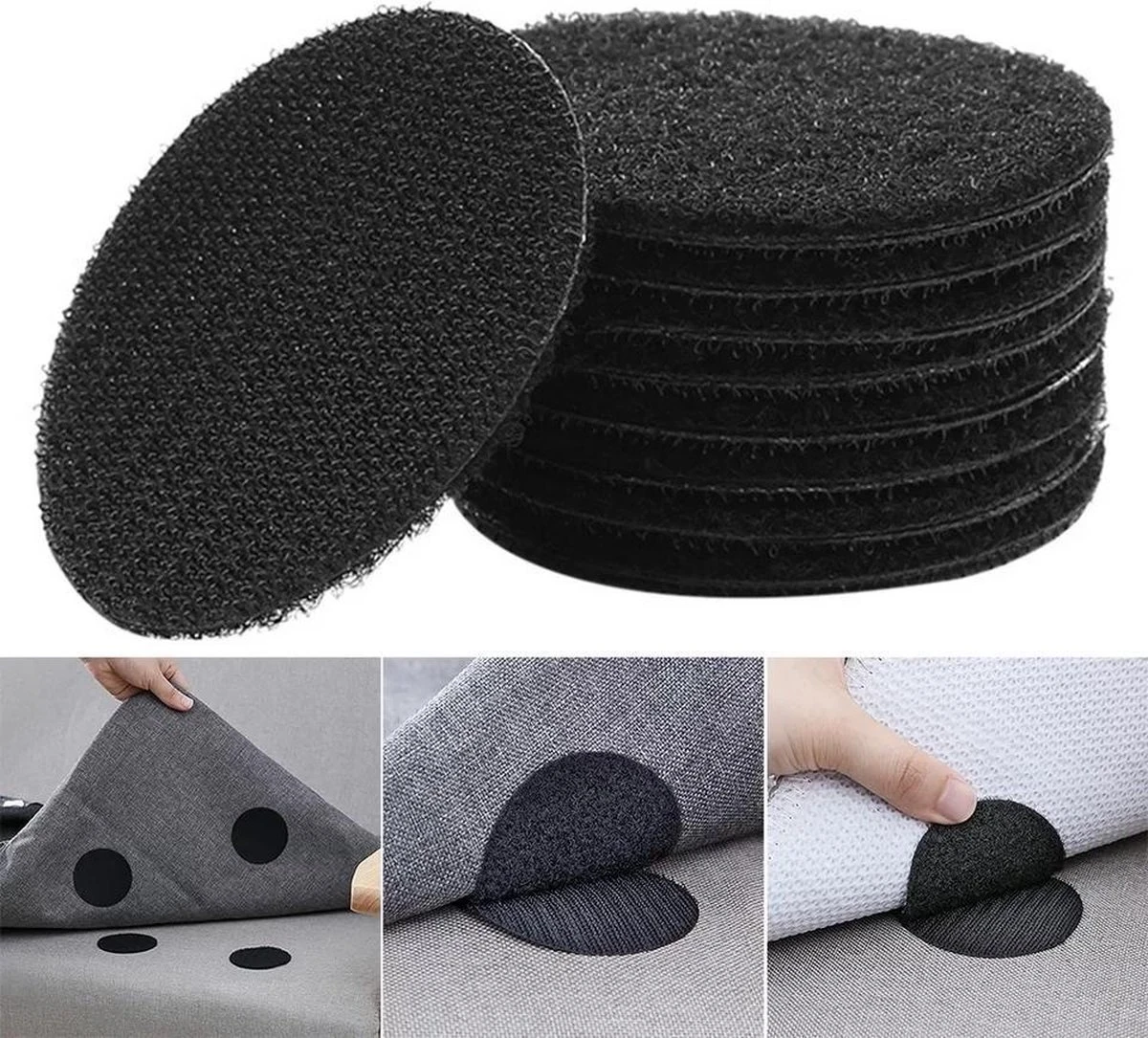 LOUZIR Zelfklevende dubbelzijdige klittenband – anti Curling tapijt- Non- slip rondjes 10 stuks