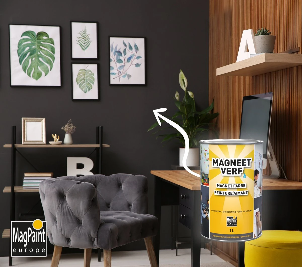 Ontdek de eindeloze mogelijkheden van magneetverf voor thuis, op het werk, in winkels of op school. MAGNEETVERF maakt van elke ruimte iets bijzonders.
