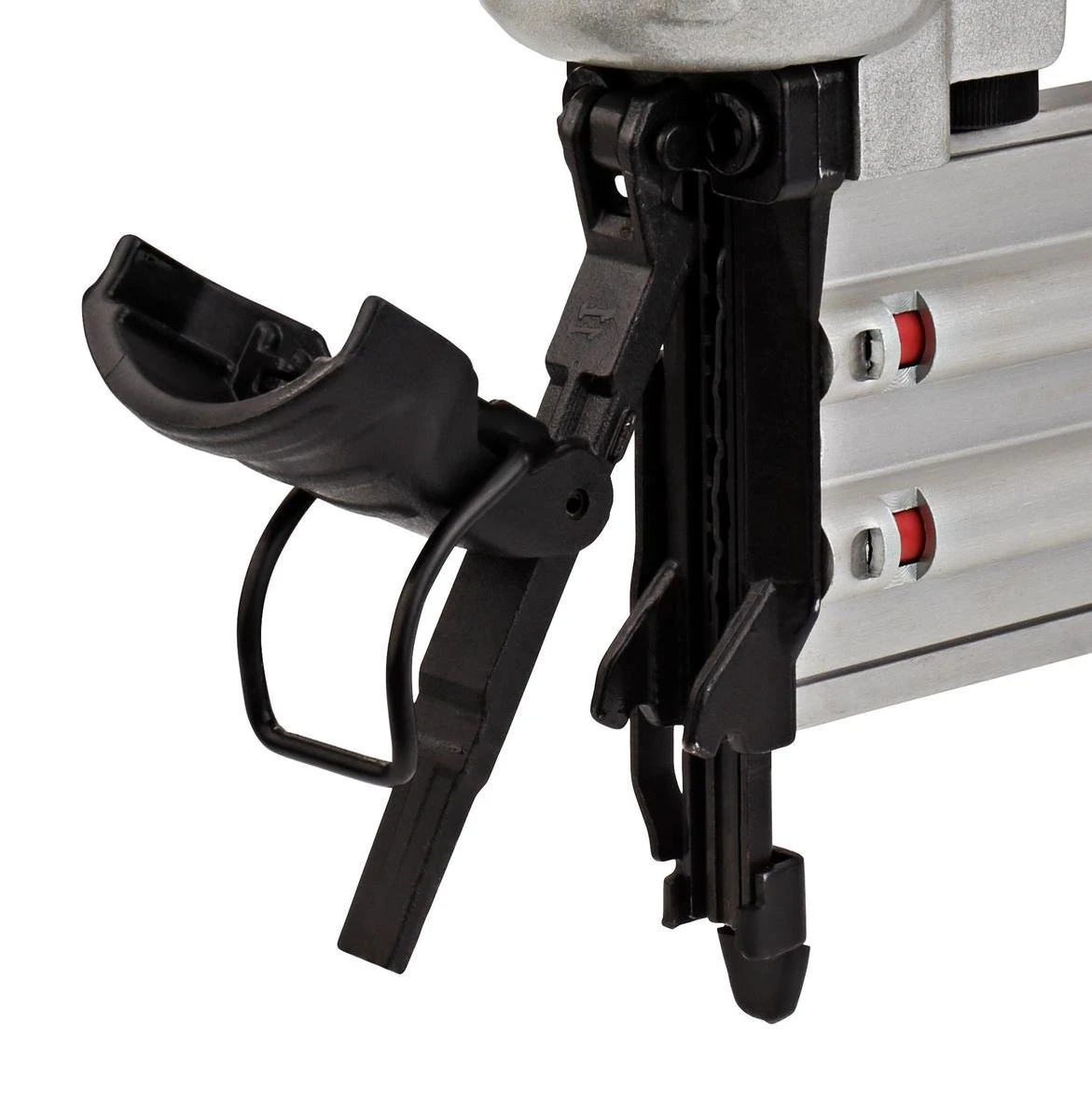 Met de AF506 introduceert Makita de opvolger van de AF505N. Deze nieuwe afwerktacker schiet 18 Gauge brads met een lengte van 15 mm t/m 50 mm. Hiermee is deze lichte en compacte machine zeer geschikt voor bijvoorbeeld meubelbouw en interieurafwerking. * Geschikt voor 18 Ga (1,0 x 1,2 mm) brads van 15 t/m 50 mm. * Ideaal voor meubel- en interieurafwerking zoals de bevestiging van plinten, architraven, kroonlijsten en lambrisering. * Licht en compact, dus inzetbaar in zelfs de kleinste ruimten. * Makkelijke diepte-instelling met draaiwiel, instelbaar zonder gereedschap. * Uitgerust met smal neusstuk voor het makkelijker werken in krappe ruimten en in smalle naden. * Gereedschapsloos te openen neusstuk voor het gemakkelijk verwijderen van eventuele vastgelopen brads. * Met ingebouwde luchtblazer, te bedienen met een knop achterop de handgreep. * Magazijn voor 100 brads. Makita AF506 8 bar Brad tacker (18 Ga)