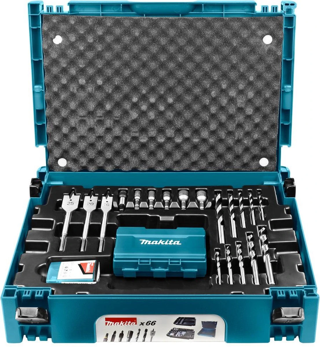 66-delige set bestaande uit de meest gebruikte maten boren en bits voor de binnen en buitenafwerking.