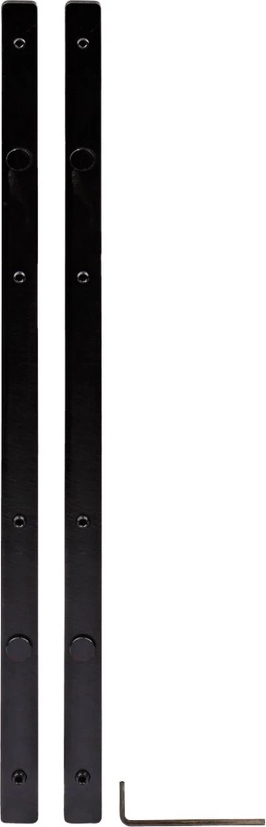 Koppelstripset compleet bestaande uit twee koppelstrips, stelschroeven M4x4mm (265993-0) en een inbussleutel (783214-3) om de geleiderails aan elkaar te kunnen koppelen.