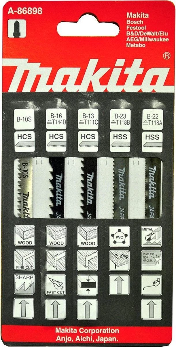 | Verpakkingsinhoud | Makita A-86898 Decoupeerzaagblad assorti |