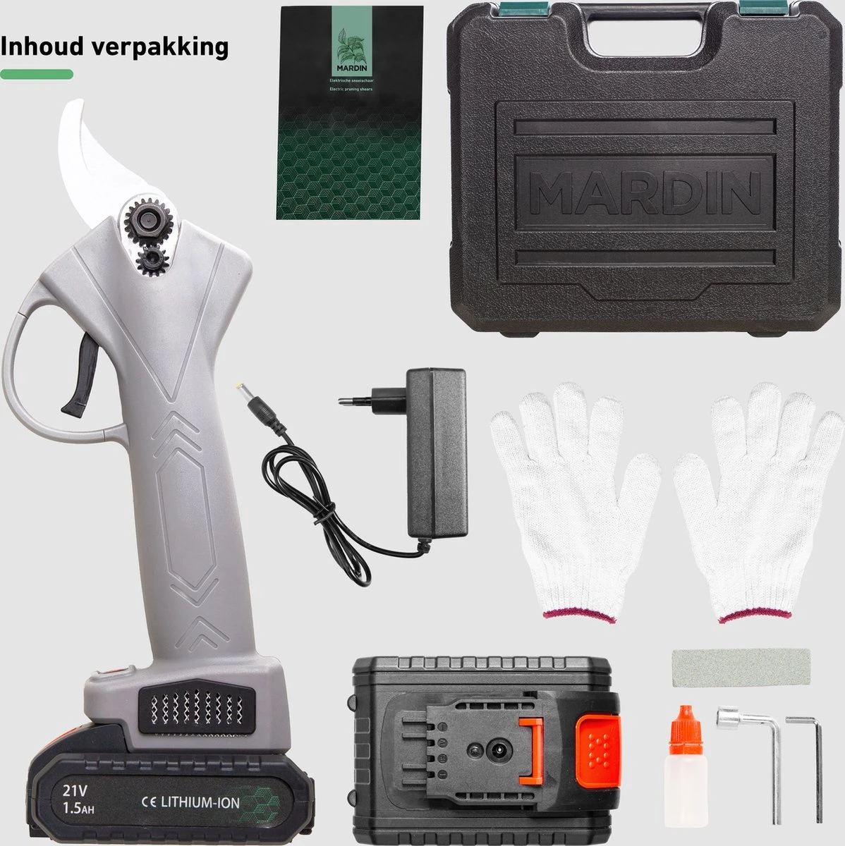 De Mardin® Snoeischaar is een krachtige elektrische snoeizaag die volledig draadloos is. De schaar wordt geleverd met een GRATIS extra accu, een opbergkoffer en met een flesje onderhoudsolie. De snoeizaag ligt lekker in de hand en heeft dan ook de perfecte grip om moeiteloos jouw planten en bomen bij te snoeien. Ideaal!