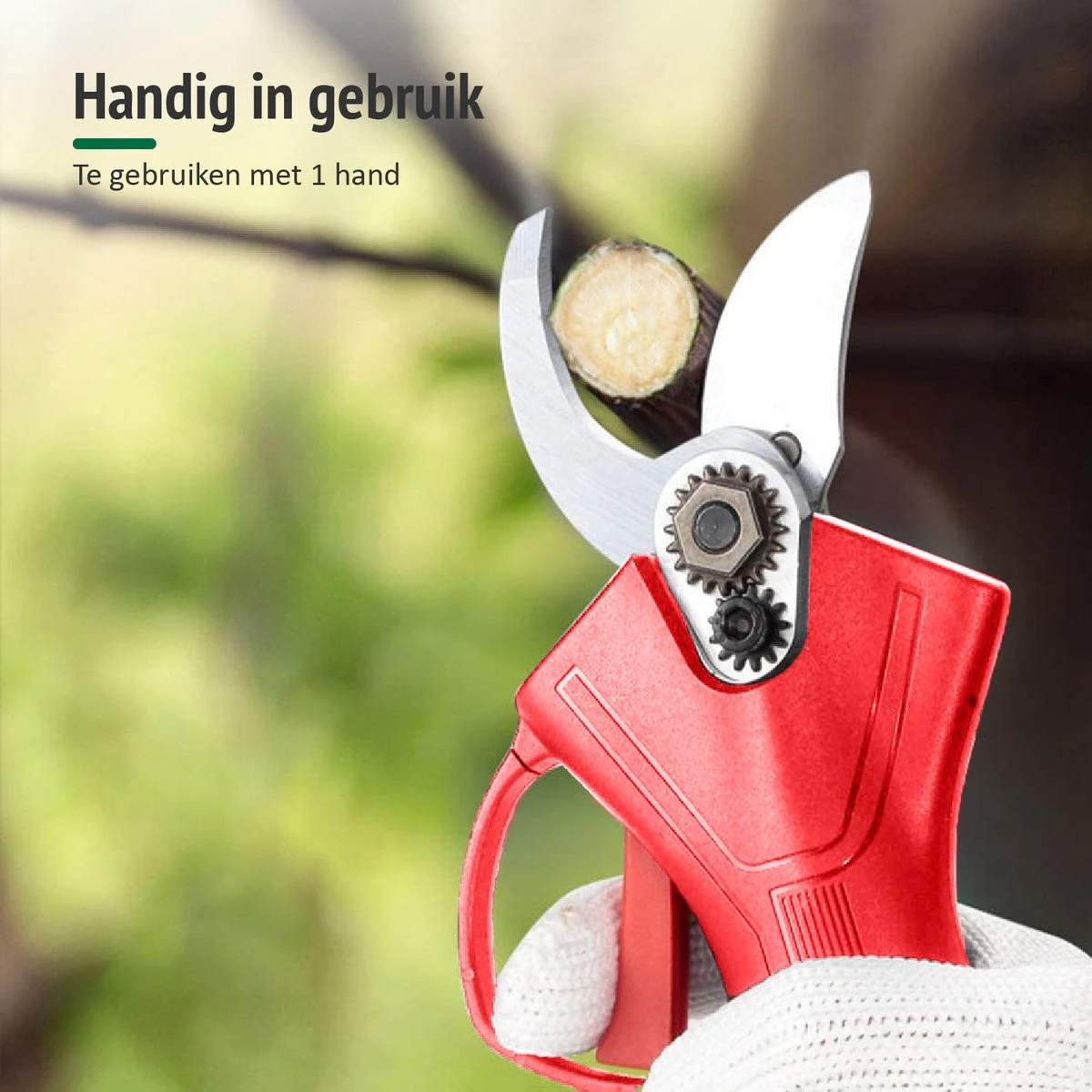Eenvoudig in gebruik – Deze krachtige elektrische snoeischaar ligt lekker in de hand. de zaag is niet zwaar en heeft een stevige anti-slip grip. Ook al ben je uren aan het snoeien, je zal met deze snoeizaag niet snel moe worden. Ideaal voor iedereen die zijn/haar tuin zelf wil onderhouden, maar daar vaak niet de energie of lichamelijke kracht voor heeft. Deze zaag neemt letterlijk al het zware werk van je over.