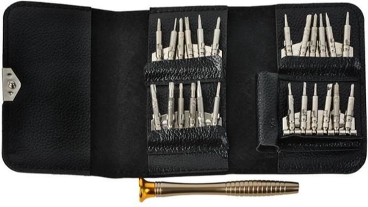 Onze precisieset bevat 24 geselecteerde speciale bit-hulpstukken, deze zijn ondergebracht in de bithouder in een praktische koffer met magnetische sluiting. Dit zorgt voor een veilige plaatsing van de afzonderlijke elementen, en u hebt elk hulpmiddel snel bij de hand. De essays zijn geschikt voor het repareren van telefoons, smartphones en tablets, maar ook voor alle Overigen apparaten die met filigrane schroeven en zekeringen kunnen worden gebruikt. De verschillende essays behandelen een breed scala aan toepassingen, ze kunnen ook worden toegepast op reparaties aan horloges of elektronische apparaten. De set is ideaal als aanvulling op de bestaande hometool.