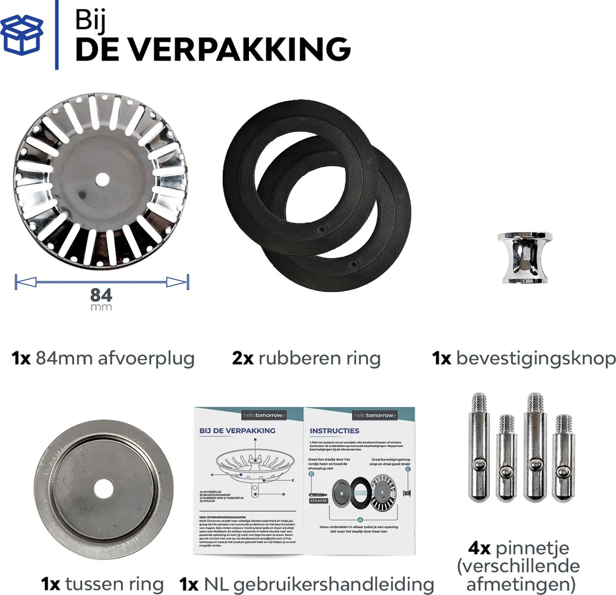 Ook zo’n hekel aan een verstopte wasbak en het verwijderen van etensresten uit de goot? Met de RVS afvoerplug van Hello Tomorrow voorkom je al deze ellende en houd jij je handen schoon! Door de afvoerstop in de gootsteen te plaatsen voorkom je schade aan jouw leidingen, houd jij de wasbak schoon en geniet jij weer van een brandschone keuken.