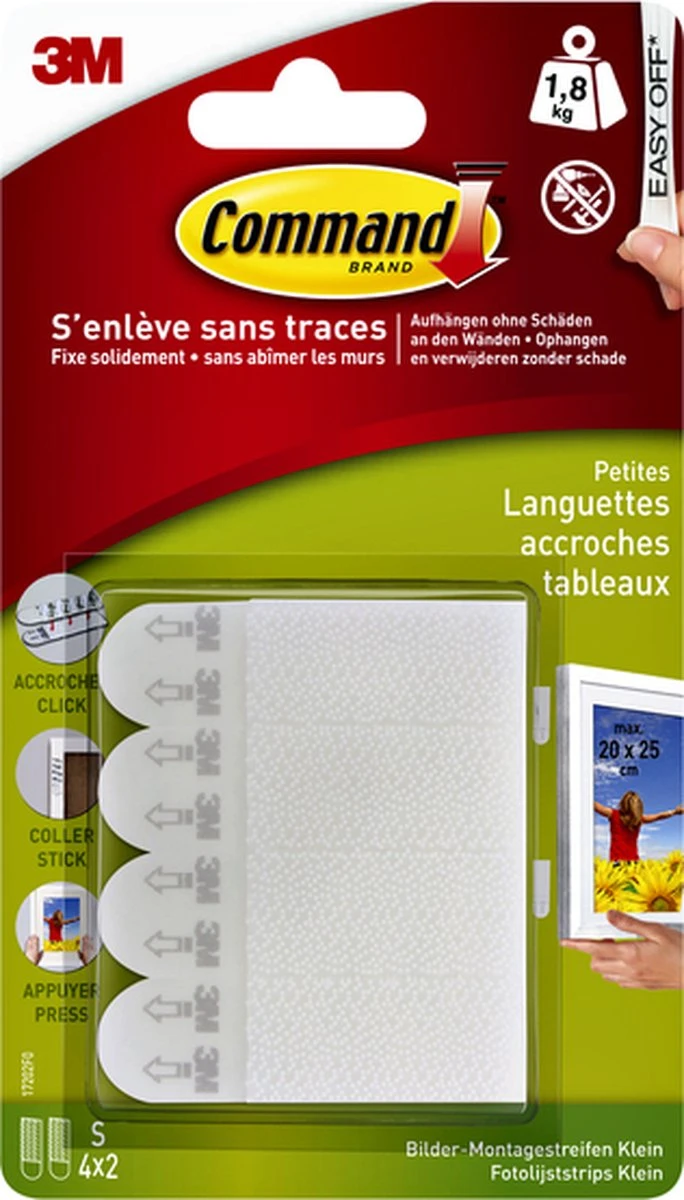 – Witte vastklikstrips zijn geschikt voor lichte lijsten.