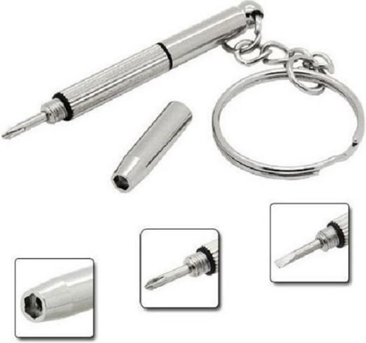 Bevestig deze aan uw sleutelbos, autosleutels of wat u dan ook iedere dag bij u draagt, en u kunt op elk moment van de dag uw losgedraaide schroefje weer