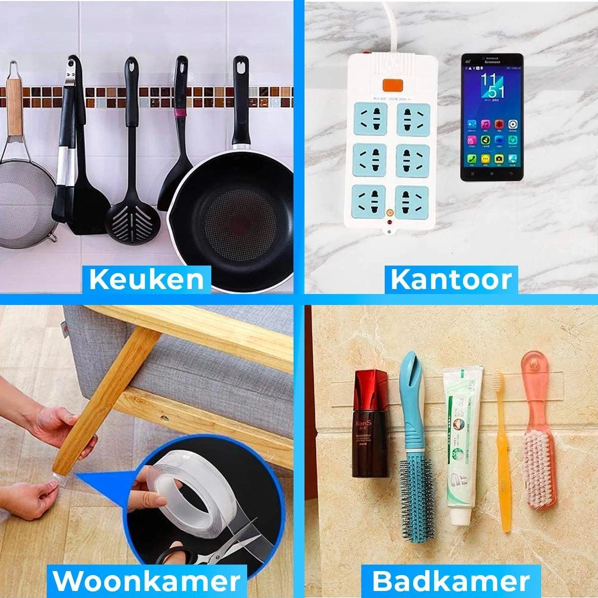 Onze nano tape staat ook wel bekend als ‘magic tape’. Deze maakt namelijk gebruik van zogenaamde nano technologie wat (o.a.) zorgt voor een extra sterke tape. De tape is 3 meter lang en transparant, herbruikbaar, afwasbaar, waterproof, rekbaar, megasterk, dubbelzijdig en laat ook nog eens geen sporen achter!