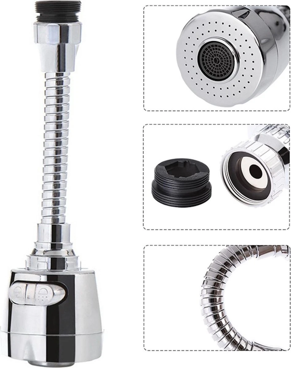 Maak het Afspoelen van uw vaat gemakkelijker met de universele flexibele kraanslang! Deze kraanslang helpt u graag een handje met de vieze vaat. Met een flexibel verlengstuk beweeg je de kraanslang gemakkelijk over je gootsteen. Deze spoeler is gemakkelijk te bevestigen aan uw huidige kraan, flexibel en voorzien van een filter bij de kraanaansluiting.