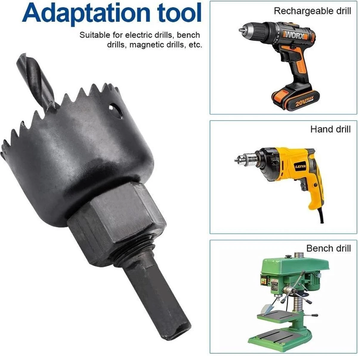 Ideaal voor het boren van gaten in hout, gipsplaat en kunststof buis. De Zeshoekige schacht is om een uitstekende grip te garanderen en slippen te voorkomen. Geleverd met 1 as met centreerpunt, 1 inbussleutel en 1 adapter.