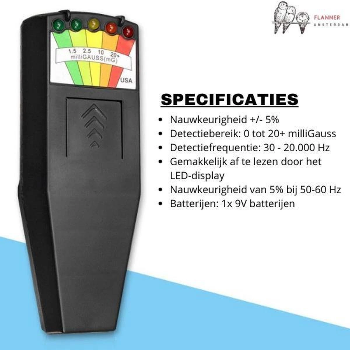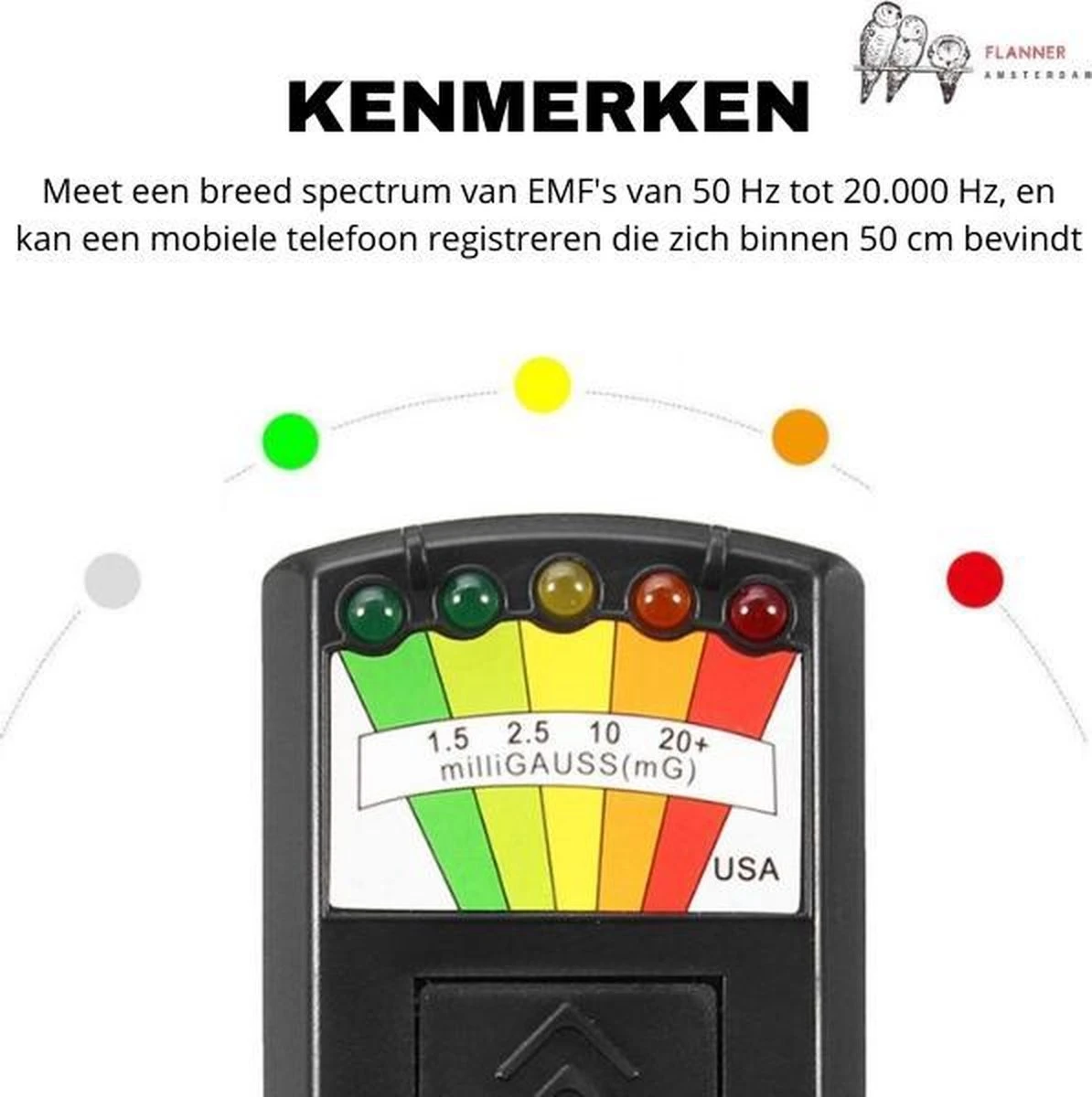 - Detecteert het EMF-bereik (50 tot 1.000 Hz) en EMF-bereik (1.000 tot 20.000 Hz).