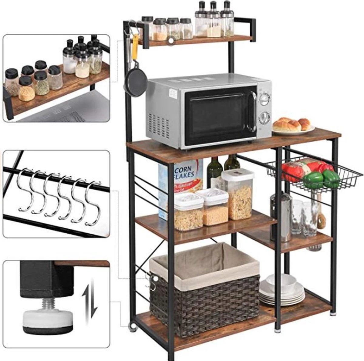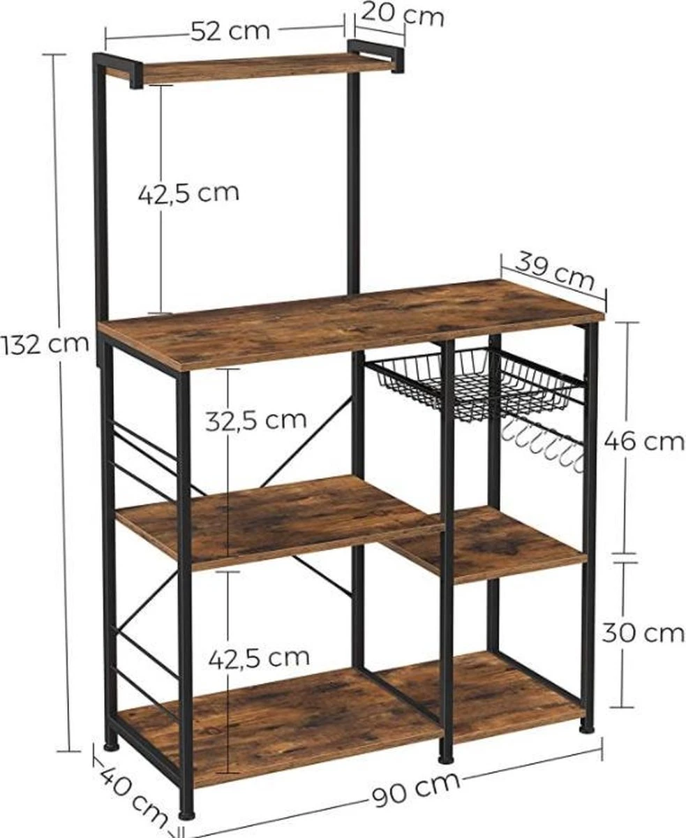 - OPSLAGBESPARING: Geen ruimte meer in de voorraadkast? Deze keukenplank staat aan uw zijde! Uitgerust met talrijke rekken, 6 S-haakjes en een draadmand, biedt het veel ruimte voor het koken van ingrediënten, pannen, dranken, kruiden, droogdoeken enz