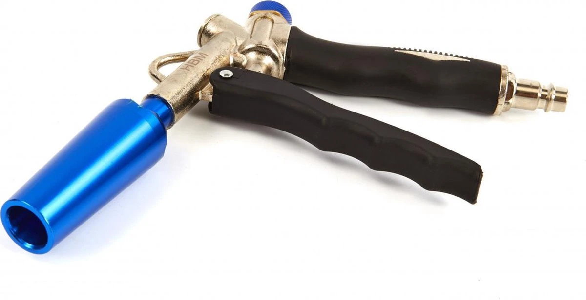 De Professioneel Blaaspistool met Turbo Nozzle en Drukregelaar is een revolutionair krachtig blaaspistool met een tot 5x krachtiger luchtverplaatsing dan die van een klassiek stofspuitje. Deze krachtige blaaspistool met Turbo spuitmond is uitermate geschikt voor het krachtig schoon blazen en snel drogen van allerlei oppervlakken. De Turbo spuitmond is in een specifieke vorm gemaakt, waardoor de luchtstroom tot 5x wordt versterkt. Er is sprake van een venturi werking. Dit blaaspistool is dus ideaal voor het krachtig schoon blazen van werkplek, fiets, toetsenborden en veel meer.