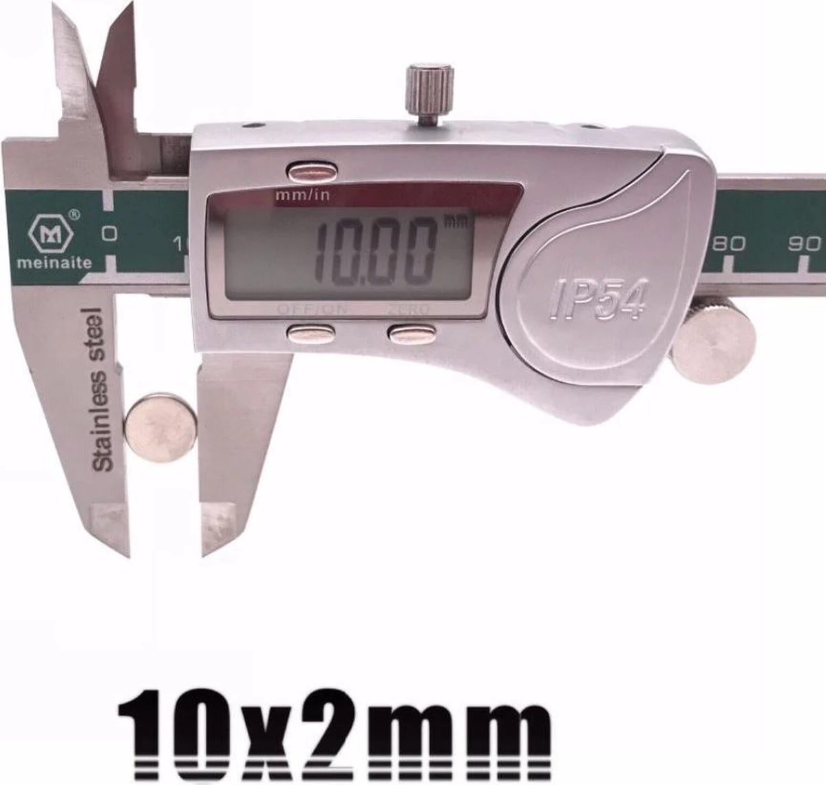 50 ronde, platte neodymium magneetjes van 10 x 2 mm per stuk. Deze zilverkleurige magneetjes zijn zeer sterk. Deze neodymium magneten zijn onder andere geschikt voor koelkast, whiteboard en nog veel meer toepassingen. Geen idee wat u zich voor moet stellen bij 10 x 2 mm? Op de laatste foto ziet u 1 van de magneetjes op een 10 eurocent muntje liggen.