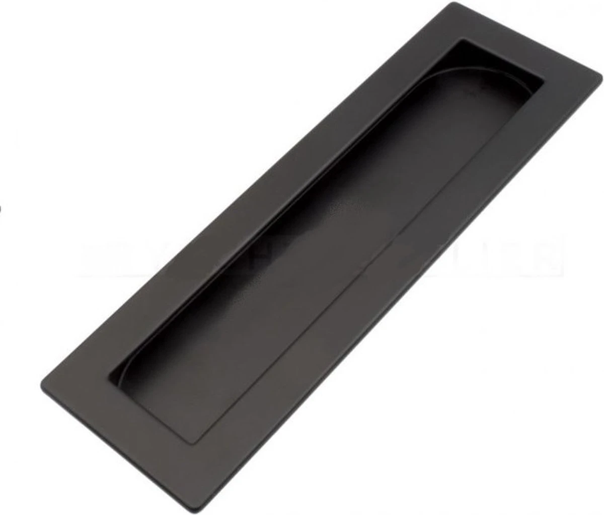 De meubelgreep heeft een mat zwarte afwerking. (Poedercoating)