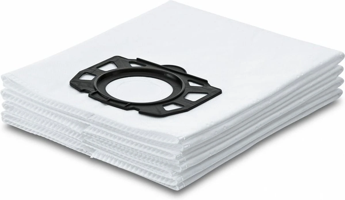 Stofzakken MV & WD 4/5/6 Vlies (4st). Uiterst scheurvaste vliesfilterzakken met een hoge afscheidingsgraad. Aanzienlijk langere intervallen dan met de papieren filterzakken. Voor alle Kärcher Home & Garden multifunctionele nat-en droogzuigers van de reeksen MV 4 tot MV 6 & WD 4 tot WD 6.