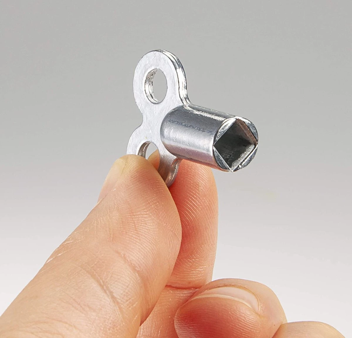Set van 2 vierkante sleutels voor het snel en ongecompliceerd openen en ontluchten van radiatoren om het verwarmingsvermogen te verhogen.