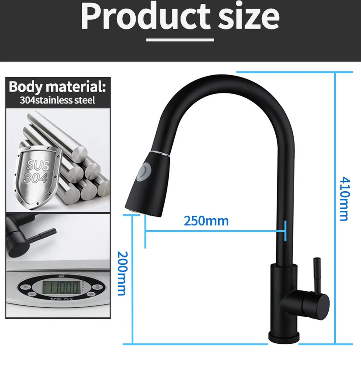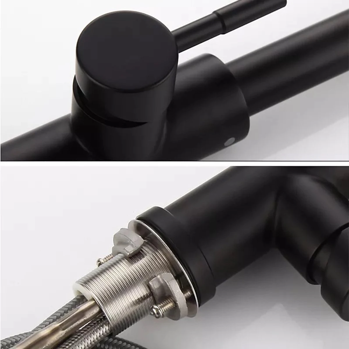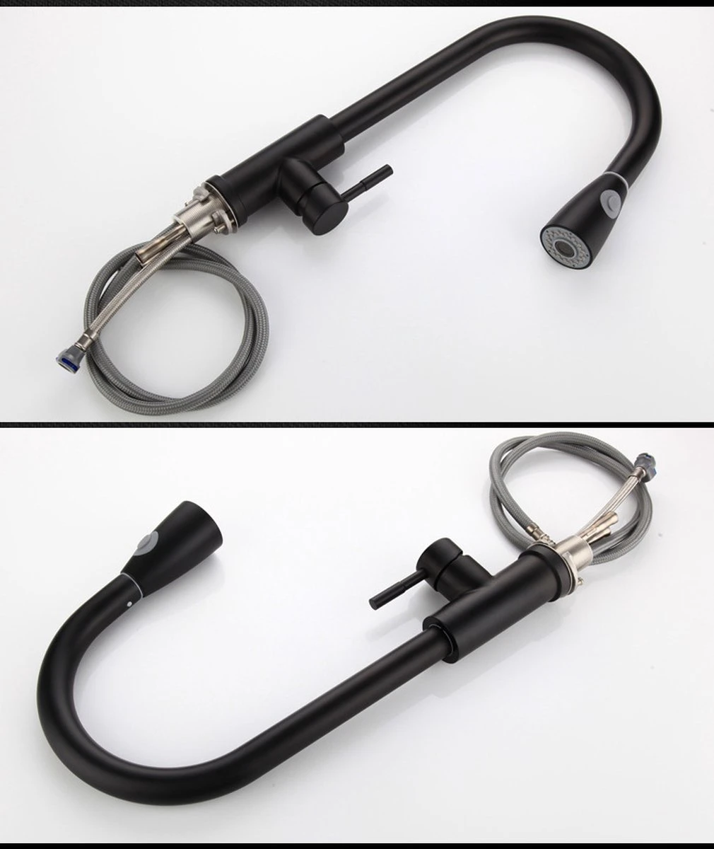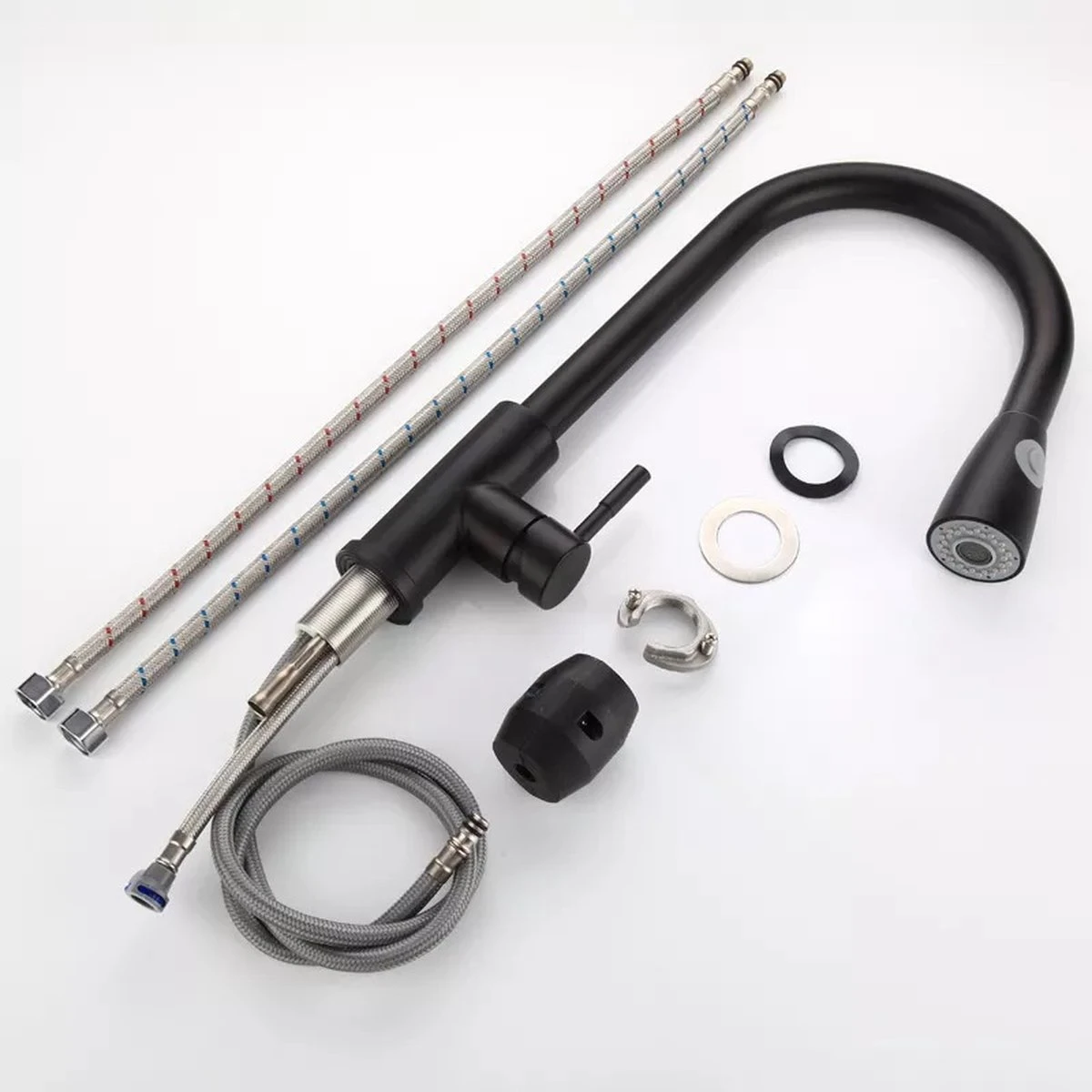 Vision Zwarte Uittrekbare Keukenkraan RVS | Boog vormig | Uittrekbaar | Mengkraan | Badkamer Kraan zorgt voor een perfecte look in elke moderne of industriële keuken. De kraan is gemaakt van hoogwaardig RVS materiaal en is voorzien van een mengkraan, waarmee je zowel warm en koud kan bedienen. Afhankelijk van hoe je de kraan wil gebruiken kun je kiezen uit een normale straal of een sproeierstraal.