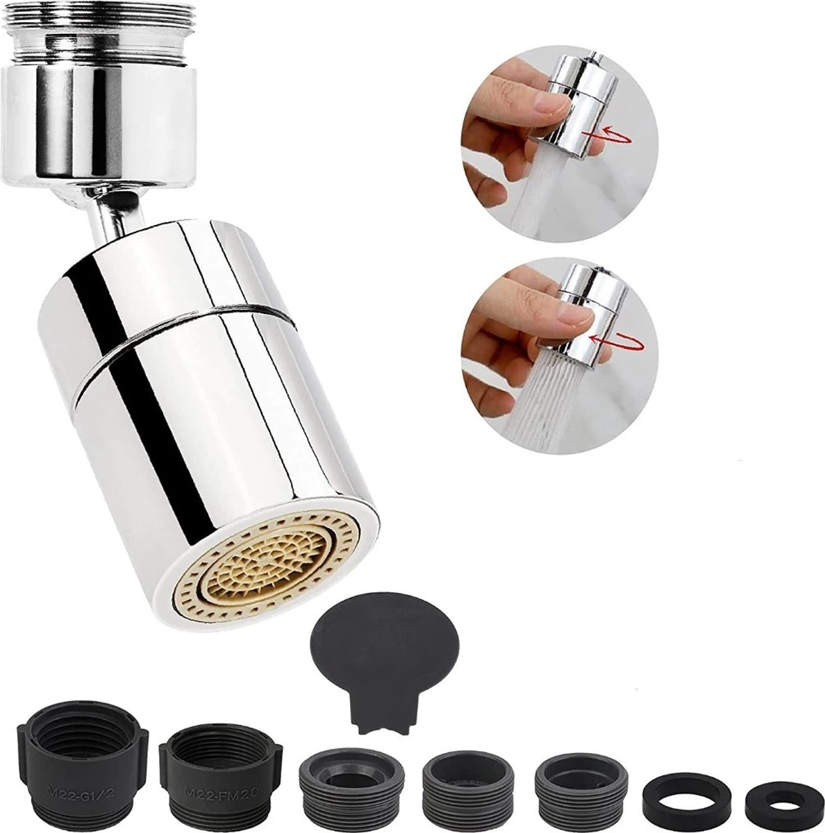 Het 360 kraantje is aan te sluiten op uw kraan met een afmeting van 21.5 tot 22 millimeter. Mocht de 360 kraan toch niet passen? Liggen er in de verpakking verschillende opzetstukken voor uw kraan. die eventueel dan passend te maken zijn op een afmeting van 23.5 tot 24 millimeter. Het is echter wel de bedoeling, dat mocht er in de huidige kraan zich een filter bevinden. Die er uit te halen mocht die niet passen. De 360 graden kraankopje beschikt al over filters.